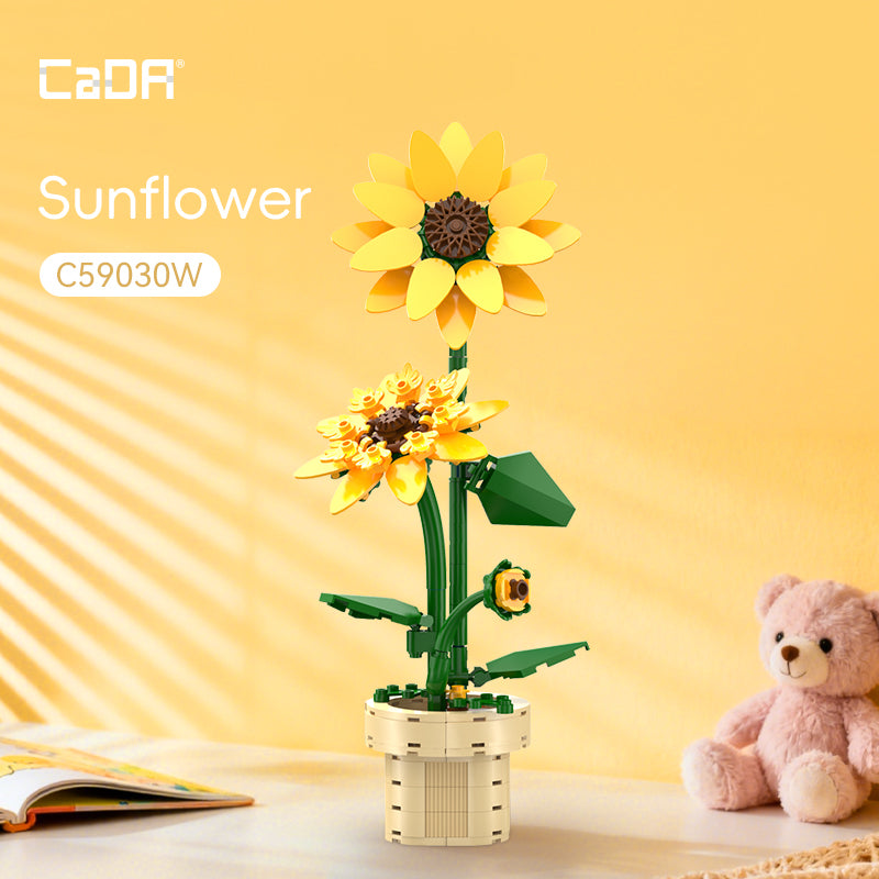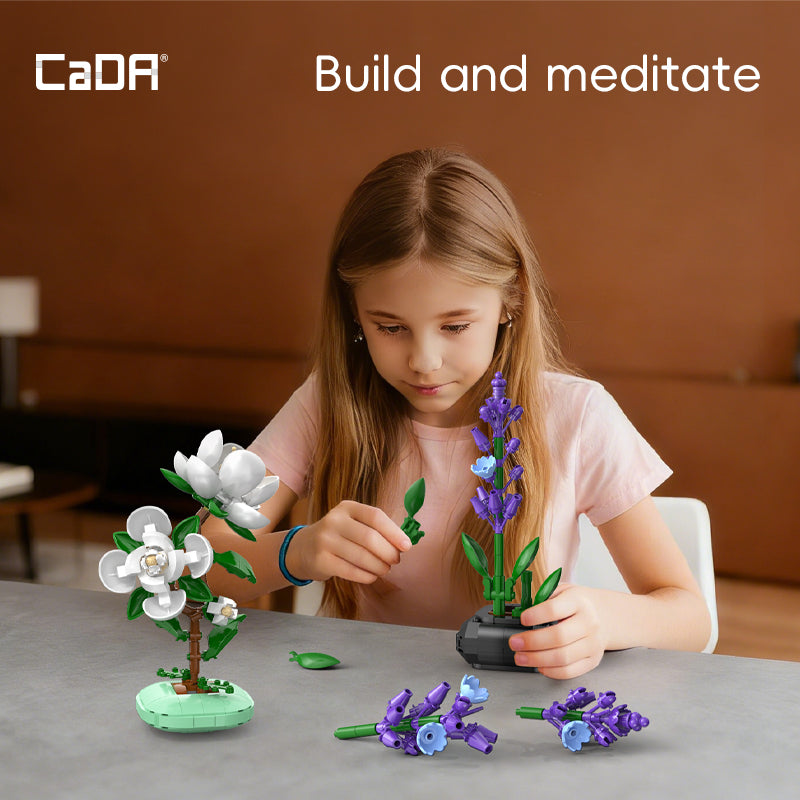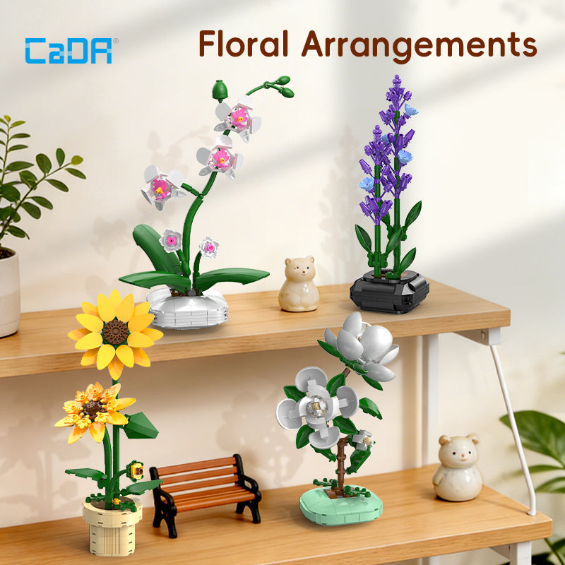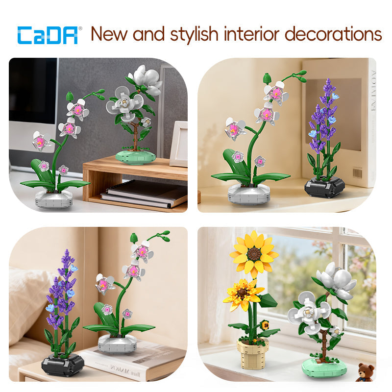 CaDA Creative Floral Pot Building Blocks Collection, Mini Potted Flower Bouquet Sets (Lavender/Orchid/Camellia/Sunflower), Beginner-Friendly Assembly, Desktop Home Decor Ornaments, Maintenance-Free Botanical Display, Ideal Gifts for Plant Lovers and Building Block Beginners.